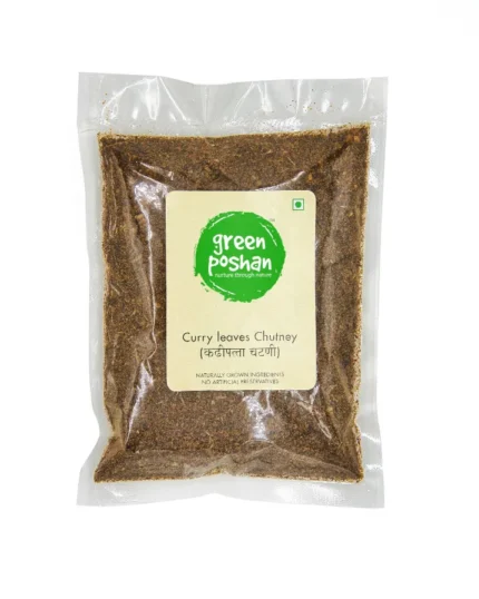 Looking to add a punch of flavour and nutrition to your daily meals? Green Poshan’s curry leaves chutney brings you the goodness of fresh curry leaves combined with spices, all ground into a dry chutney powder you can enjoy anytime, anywhere. Packed with health benefits and bursting with traditional taste, this natural curry leaves chutney is made with care, without additives or artificial flavouring. Sourced directly from farms and ground using traditional methods, this chutney captures the real aroma of curry leaves in every bite. It's ideal to pair with rice, idli, dosa, chapati, or curd for a bold and nourishing experience. Curry leaves chutney is a dry or semi-dry blend made using roasted curry leaves, spices, and sometimes lentils or coconut. This South Indian-inspired spice mix is known for its earthy, aromatic flavour and is typically enjoyed as a condiment alongside staple Indian dishes. Not only does it boost taste, but it also provides natural nutrients and antioxidants from the curry leaves.