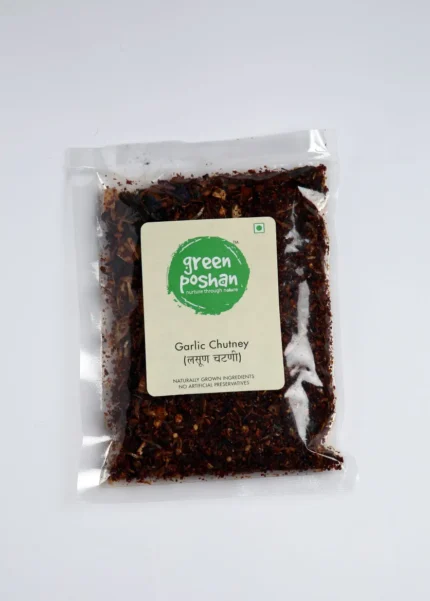 If you're someone who enjoys a fiery kick and strong flavour with your meals, then Green Poshan’s Garlic Chutney is exactly what your tastebuds crave. Made with carefully selected ingredients and no artificial additives, our natural garlic chutney brings the authentic taste of traditional Indian kitchens right to your plate. Perfect as a side dish with vada pav, bhakri, paratha, or even plain dal-chawal, this spicy dry chutney mix adds heat, depth, and aroma to every bite. Whether you’re looking to enhance your breakfast, lunch, or evening snack, one spoon of this chutney can completely transform your meal. Garlic chutney is a traditional Indian condiment made from dried or fresh garlic, red chillies, and spices. Known for its bold and pungent flavour, it is commonly used in Maharashtrian, Rajasthani, and South Indian cuisines. It can be enjoyed dry or wet depending on the recipe and usage.