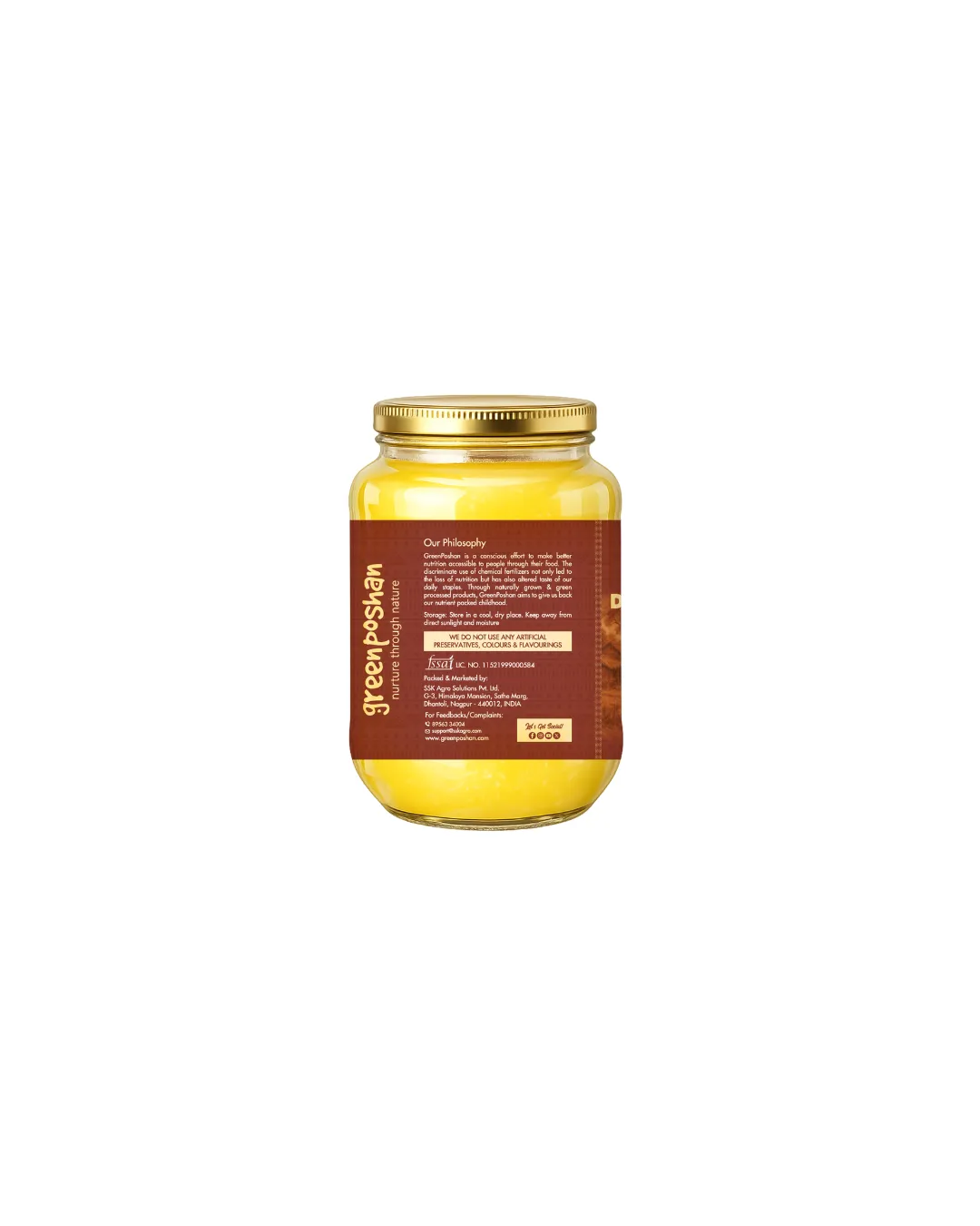 GreenPoshan’s A2 desi ghee is derived from the milk of indigenous breeds, known for their A2 beta-casein protein. Produced through Bilona methods, this ghee has a rich aroma, golden color and a distinct flavor, imparting a delightful taste to culinary creations. Renowned for its potential health benefits and cultural significance, desi cow ghee is a prized ingredient in Indian households, valued for its purity and nutritional properties. A2 desi cow ghee has healthy fat supporting digestion and gut health and anti-inflammatory properties.