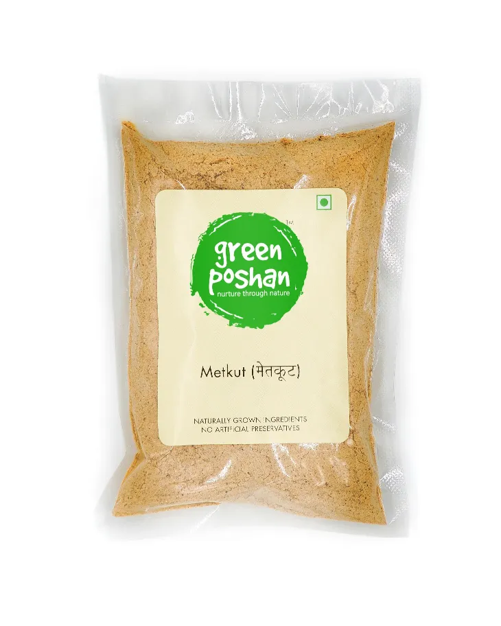 Made with care in small batches, natural metkut powder from Green Poshan is free from artificial preservatives, synthetic flavouring, or added colours. Just pure, wholesome ingredients—roasted, blended, and packed with love.