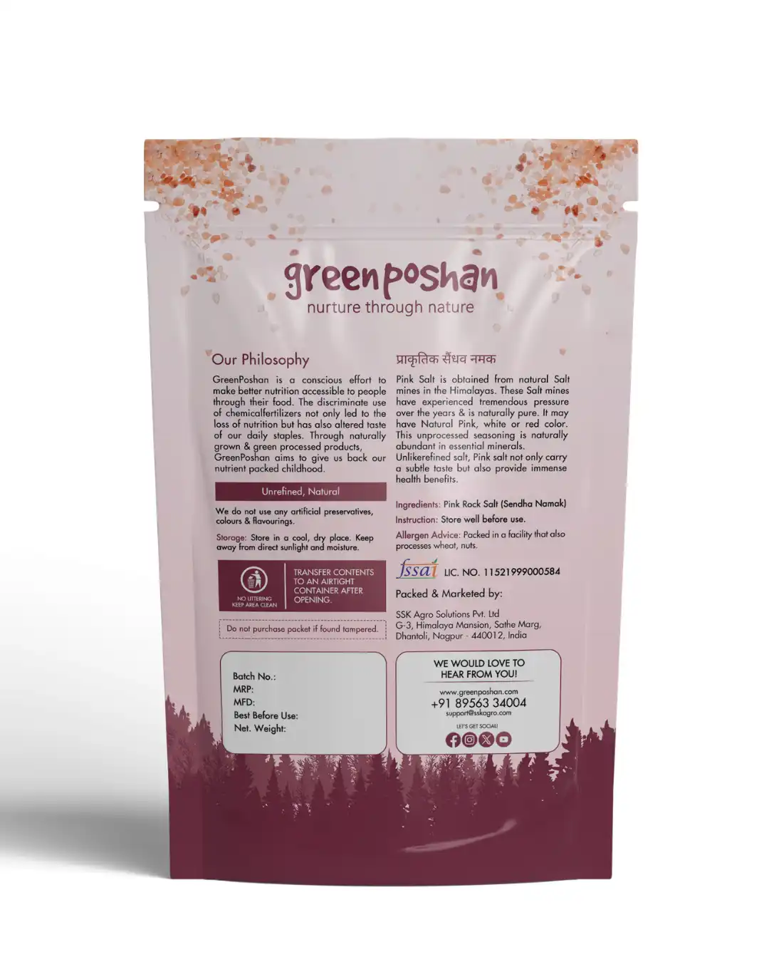 Green Poshan brings you Himalayan pink rock salt, a pure and unrefined form of natural rock salt sourced from the ancient salt deposits of the Himalayan region. Known for its soft pink colour, mild taste, and high mineral content, this salt has long been used in traditional Indian kitchens, Ayurveda, and natural therapies.